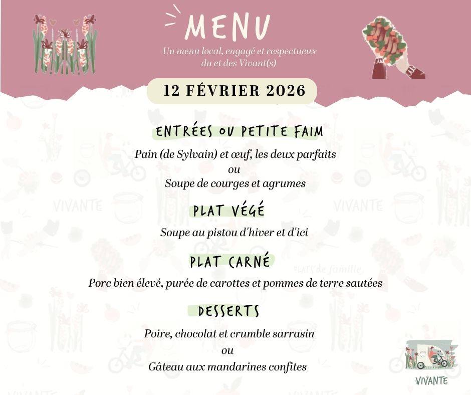 Le menu change chaque semaine selon la production (encore mieux que la saison!).