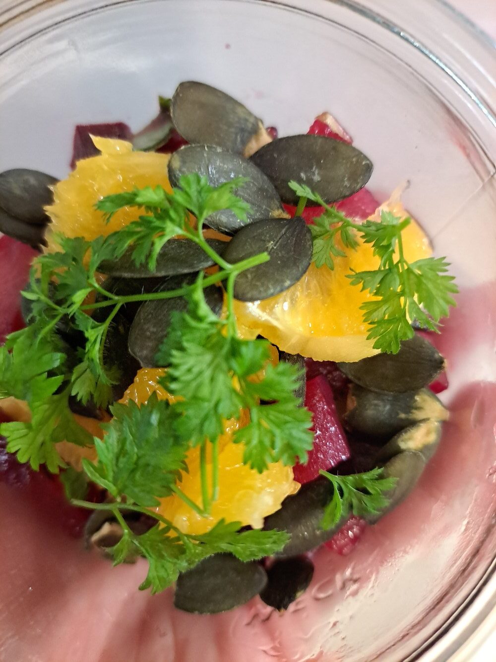 Betteraves, oranges, pain doré